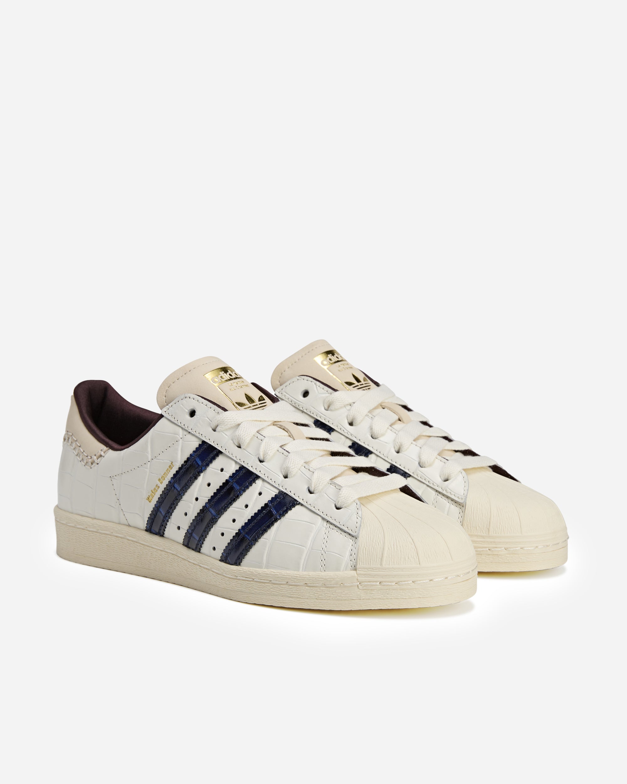 Step up your sneaker game with the adithtdas Originals x Wales Bonner Superstar, a standout piece from the superstar family. This exclusive collaboration brings a fresh twist to the iconic Superstar silhouette, blending classic design with contemporary aesthetics. Crafted with premium materials, the sneaker features a soft leather upper and signature rubber shell toe, ensuring both durability and timeless style. The intricate details and impeccable craftsmanship highlight the unique touch of Wales Bonner. Categorized under footwear, these kicks are perfect for sneaker enthusiasts who value heritage, quality, and innovation. Add a touch of sophisticated streetwear to your collection with this exceptional piece from NAKED Copenhagen.