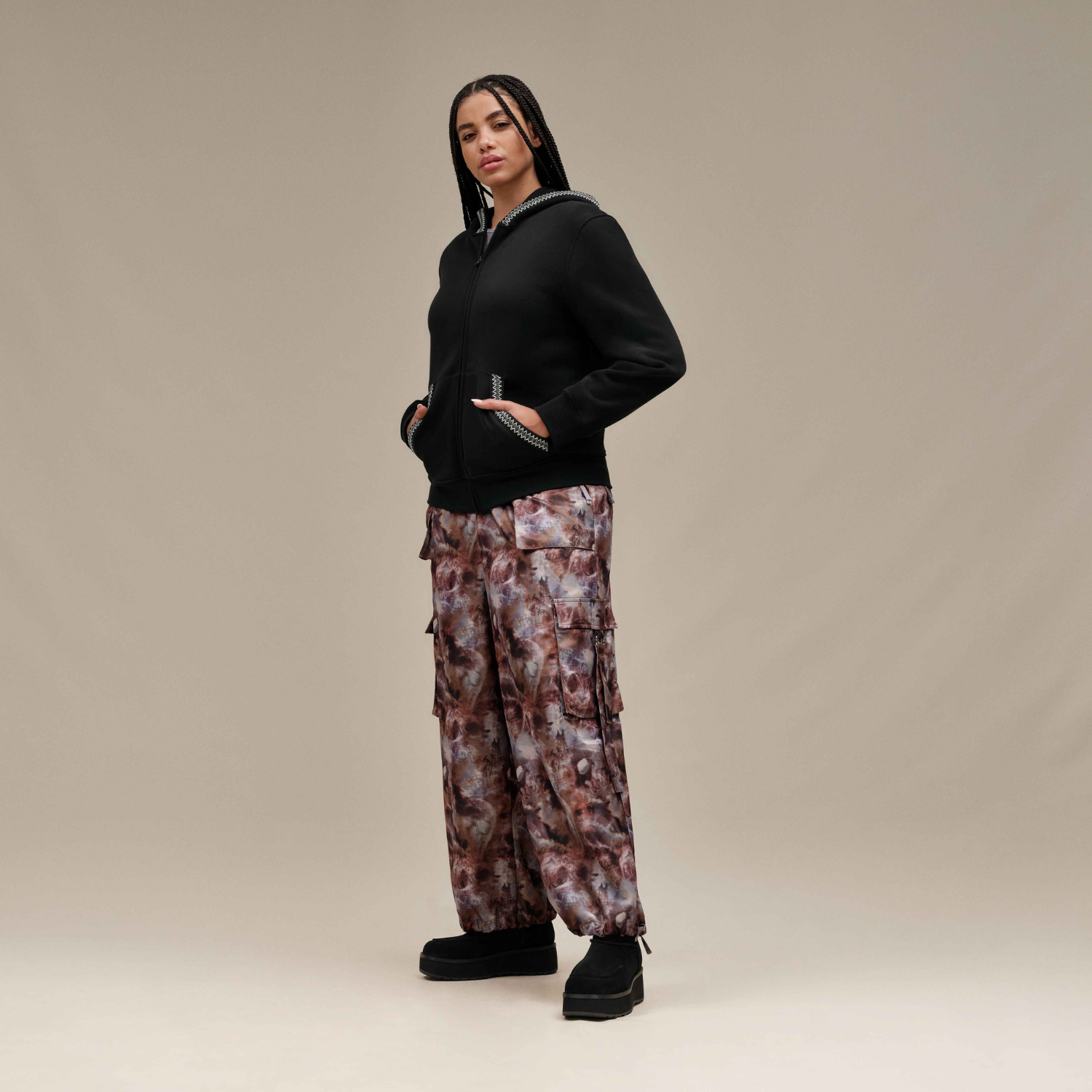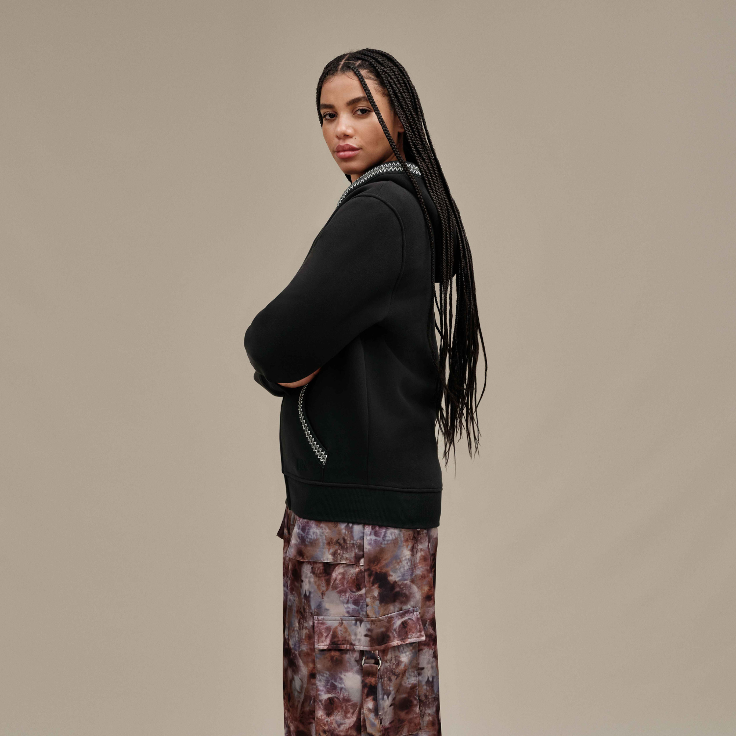 - uthtggbraid trim on exterior edge of hood and kangaroo pocket opening (100% Recycled Polyester)