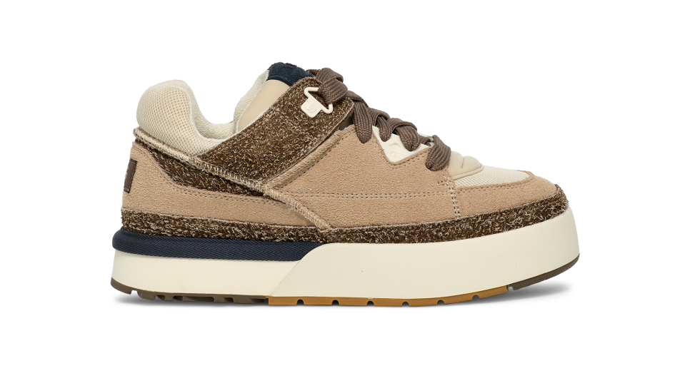 - Suede, Mesh, Textile padded tongue, Classic boot inspired TPU heel stabalizer, Textile made with 50% recycled polyester and 50% virgin polyester fibers upper