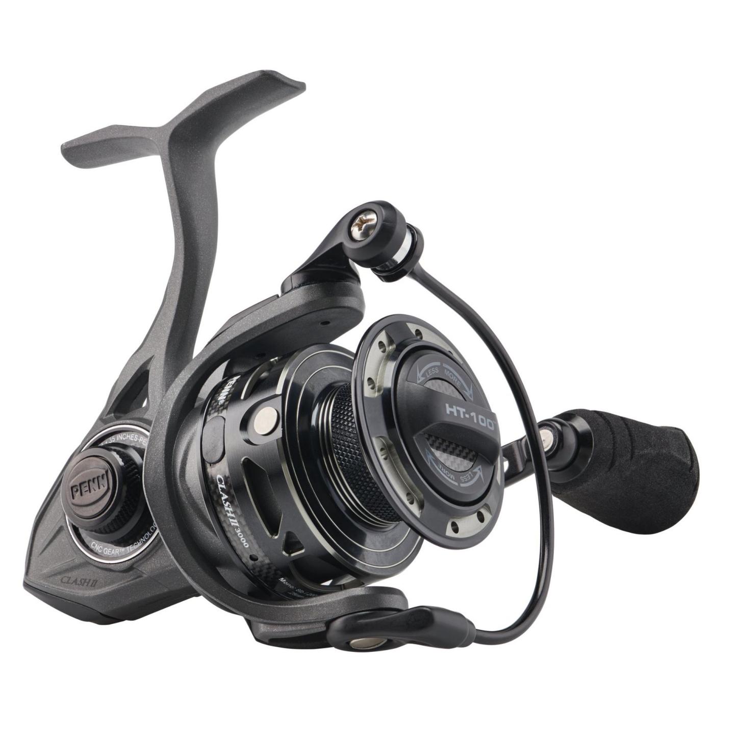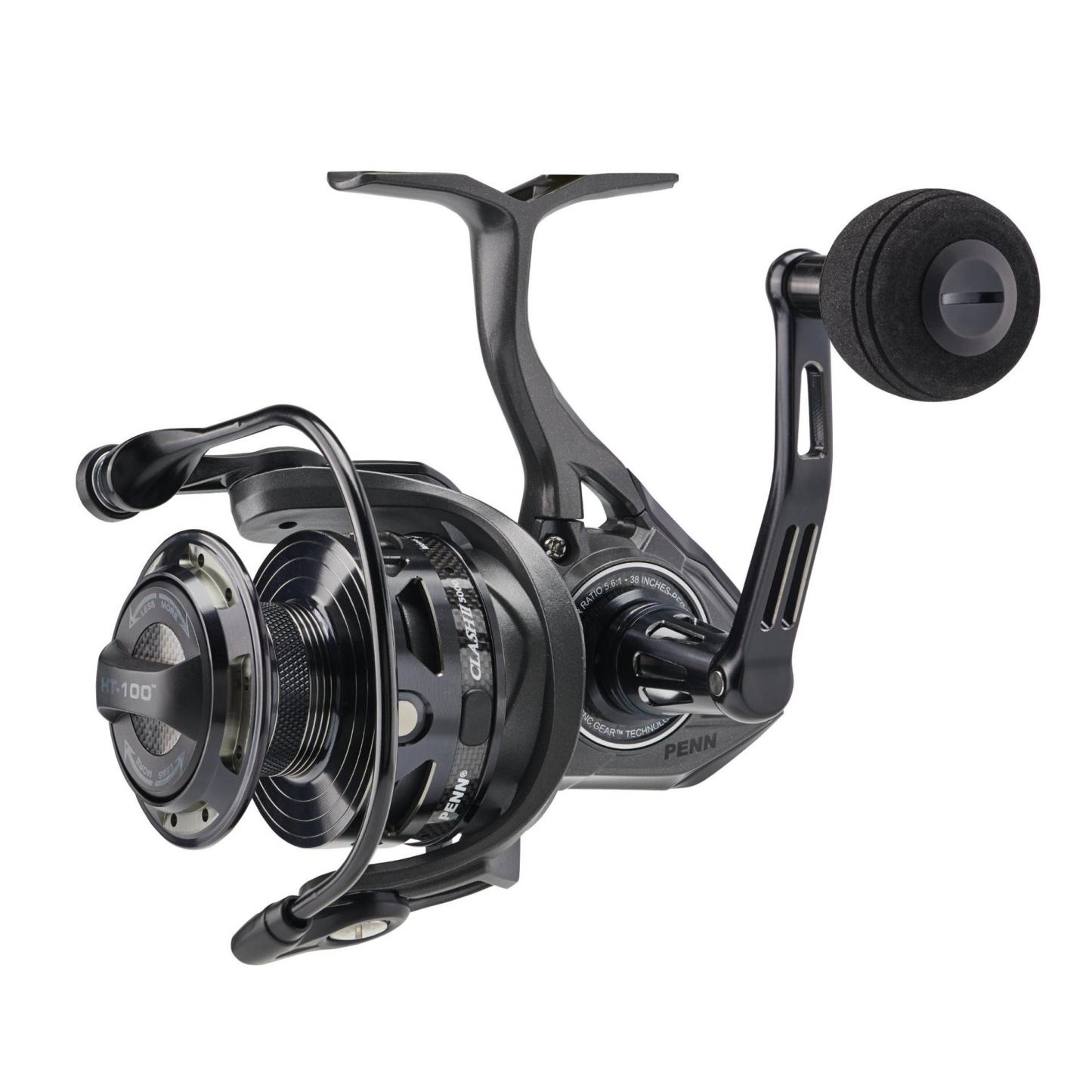 The PENN® Clash™ II is the ultimate inshore reel. Featuring our proprietary CNC Gear™ Technology and HT-100™ carbon fiber drag system, the Clash II can handle any inshore species you hook. The Hydrophobic Line Roller Bearing, along with the Clutch Armor System ensure protection to critical components in all weather conditions without sacrificing weight,while the Leveline® Slow Oscillation System ensures perfect line lay, cast after cast. Available in sizes 1000-5000, the Clash II has the right size for any inshore application.