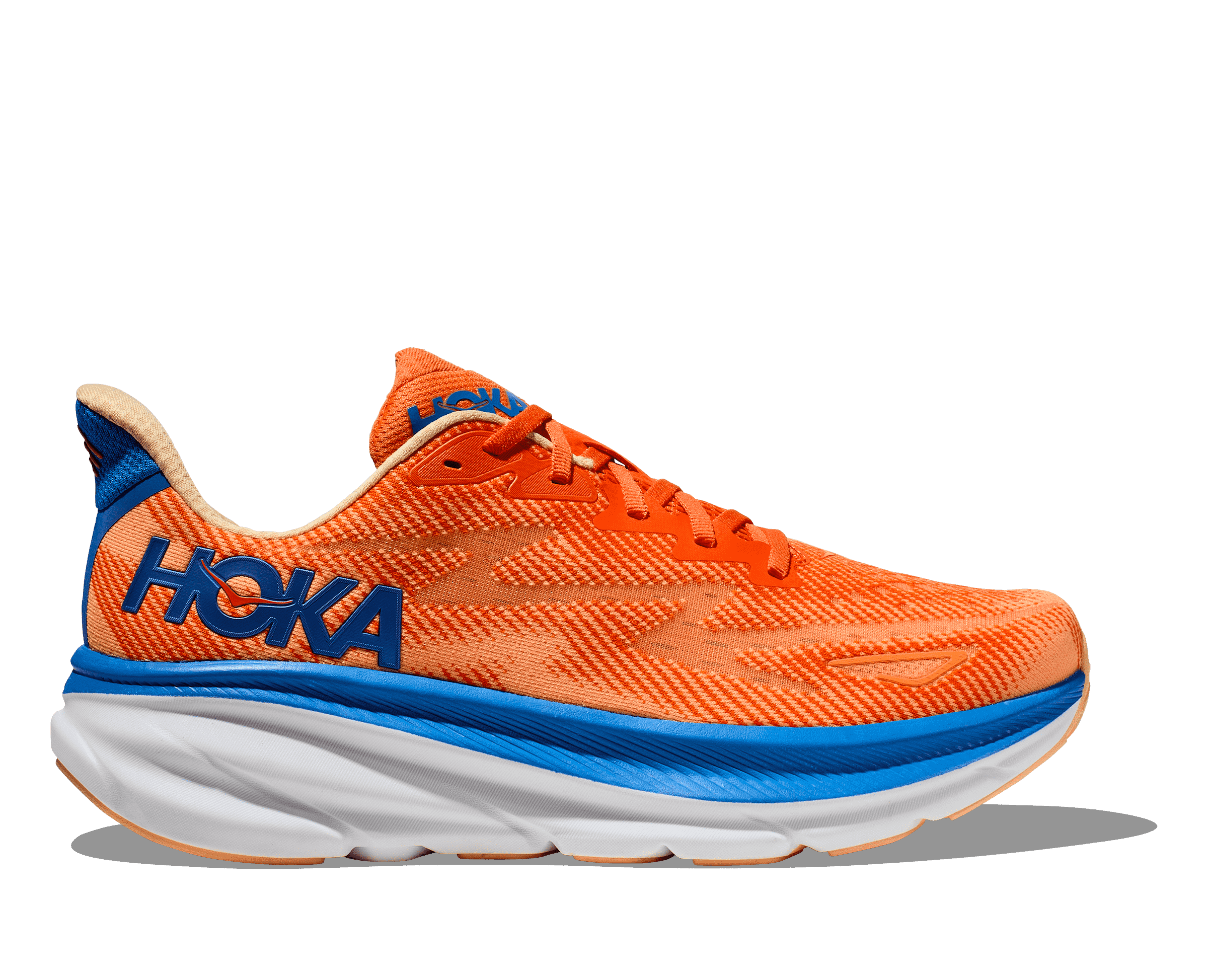 Light and plush for everyday miles. The ninth iteration of HOKA's award-winning Clifton franchise has launched, lighter and more cushioned than ever before! Eliminating weight while adding 3mm in stack height, the new men's Clifton 9 delivers a revitalized underfoot experience with a responsive new foam and improved outsole design. Removing overlays and hotmelts, the stripped back upper has been consciously crafted with a plusher heel, reflective heel panel, and streamlined tongue with single side medial gusset.