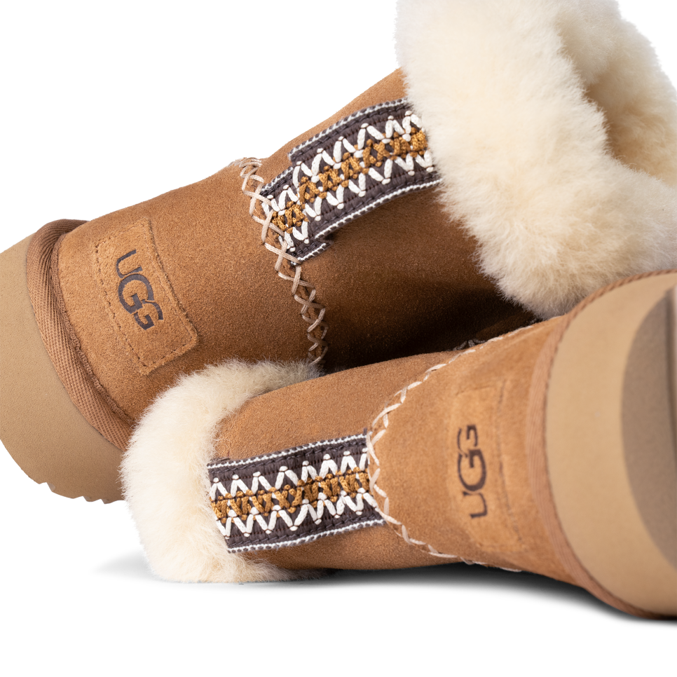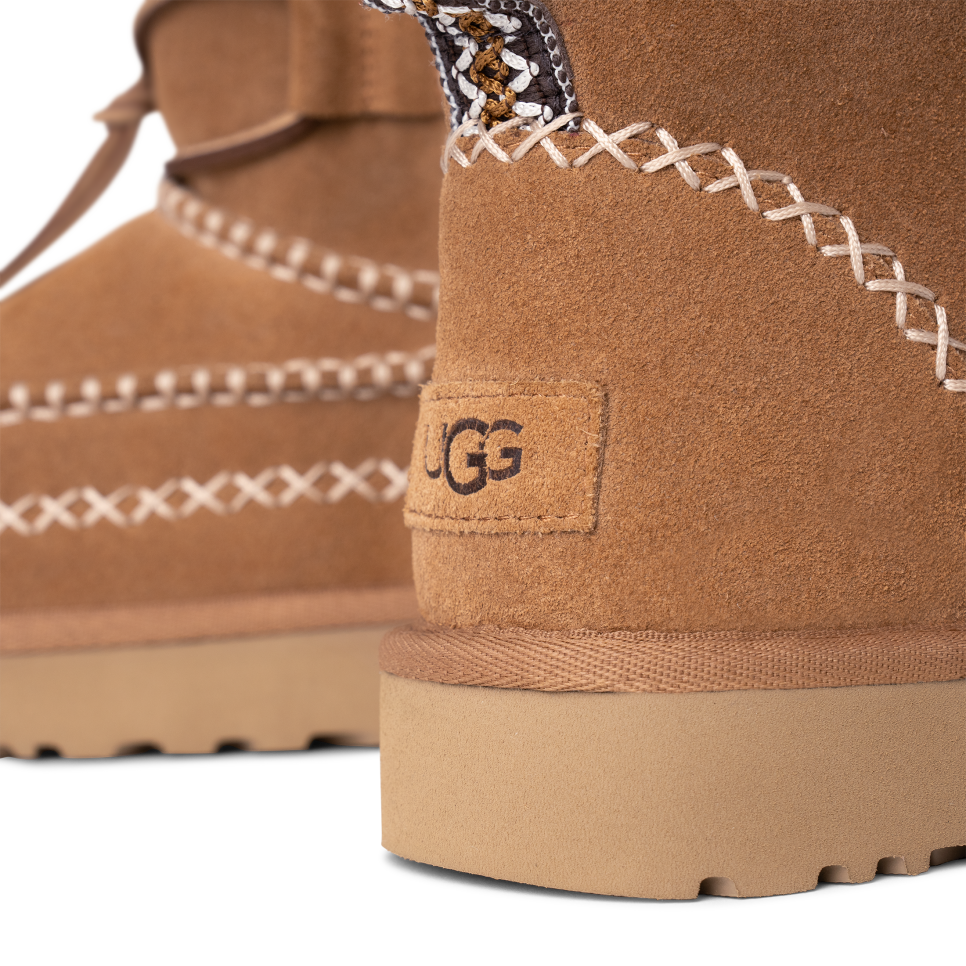 - Decorative stitching, UGGbraid pull tab, Suede mudguard