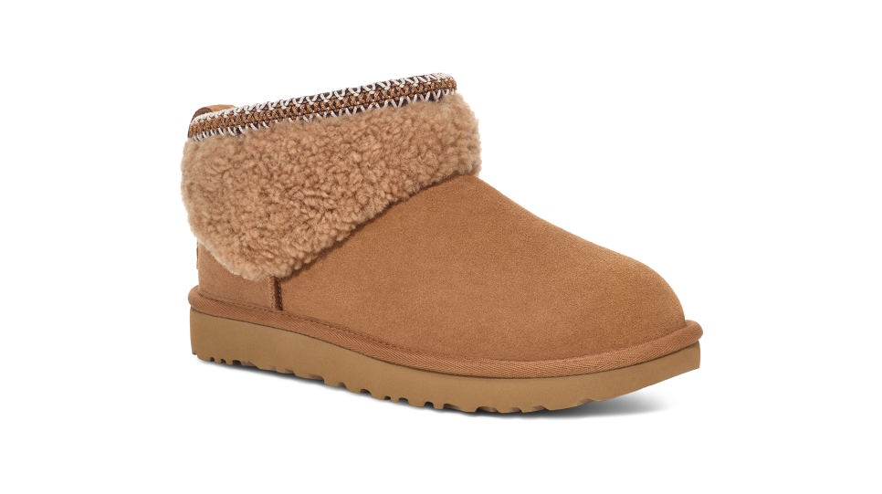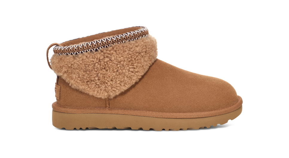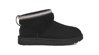 - UGGbraid made with 100% recycled polyester fibers, Suede heel counter, Suede vamp, Padded collar, 10mm curly sheepskin shaft